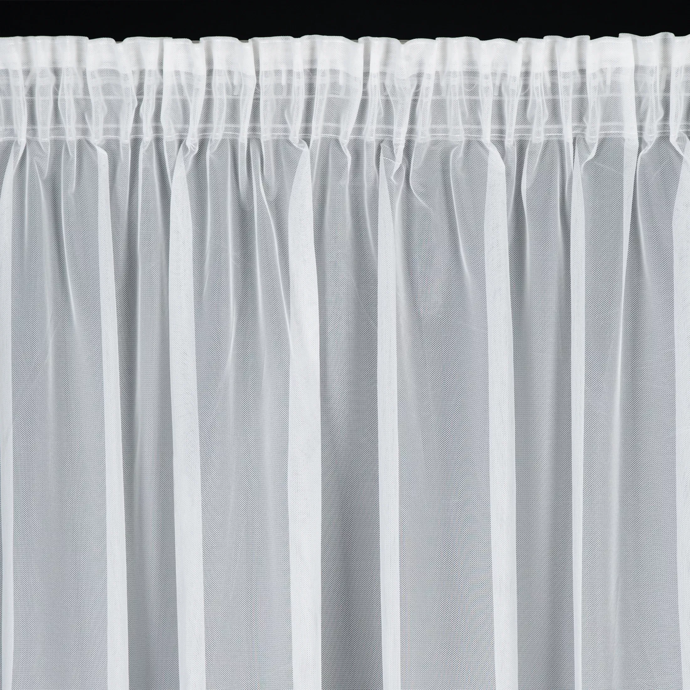 Przed zmarszczeniem firany na taśmie marszczącej, ważne jest, aby na końcach związać sznurki w supeł, co zabezpieczy je przed wyciągnięciem z taśmy.