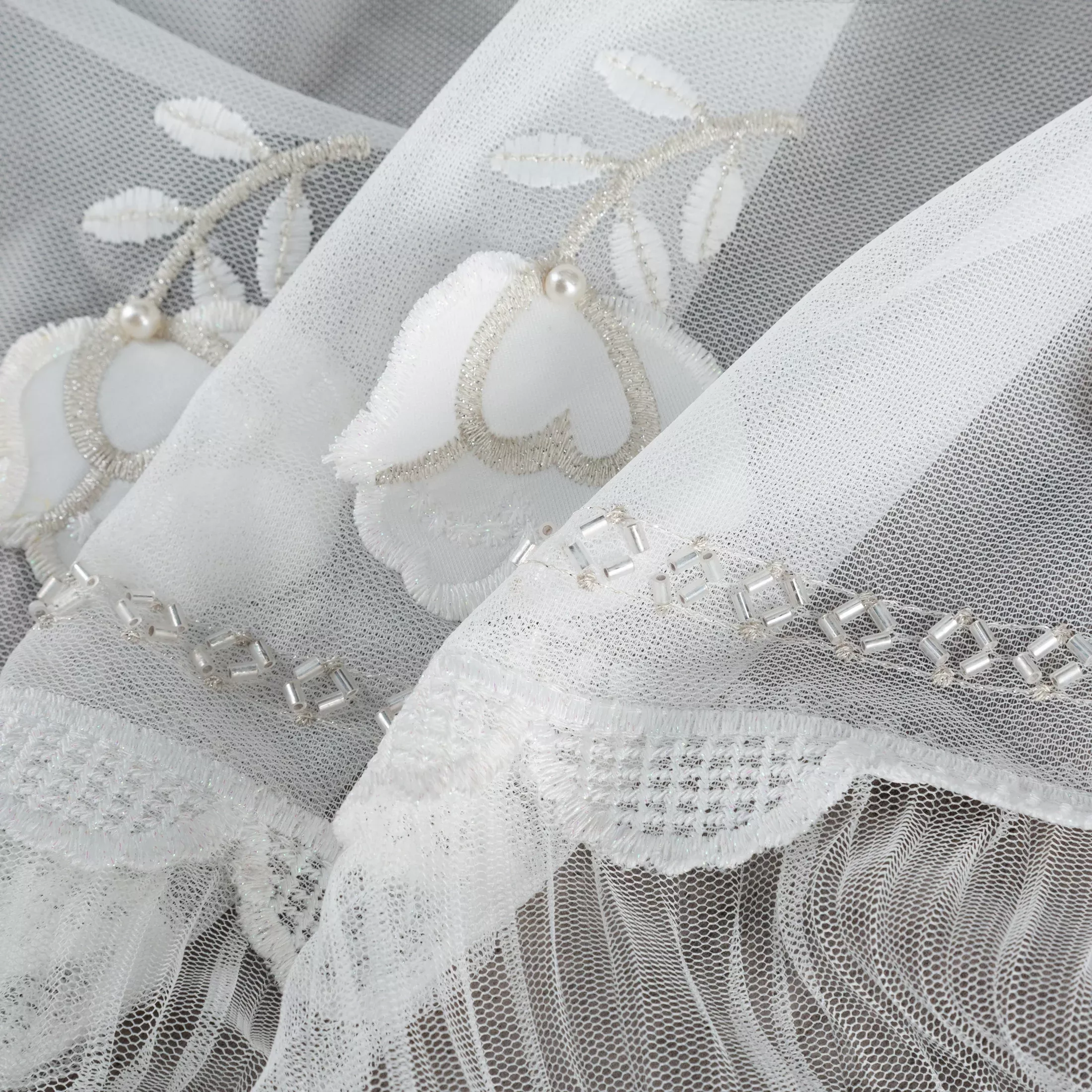 Wprowadź do swojego wnętrza subtelny urok i elegancję dzięki gotowej firanie zdobionej aplikacją z kwiatowym wzorem. Delikatna, lekka tkanina pięknie przepuszcza światło, tworząc przytulną i romantyczną atmosferę.