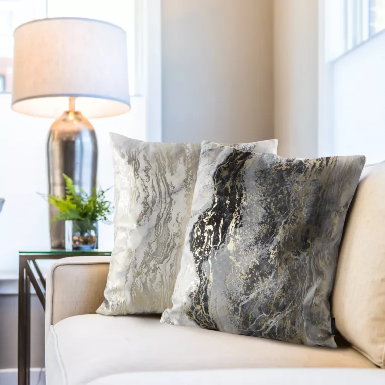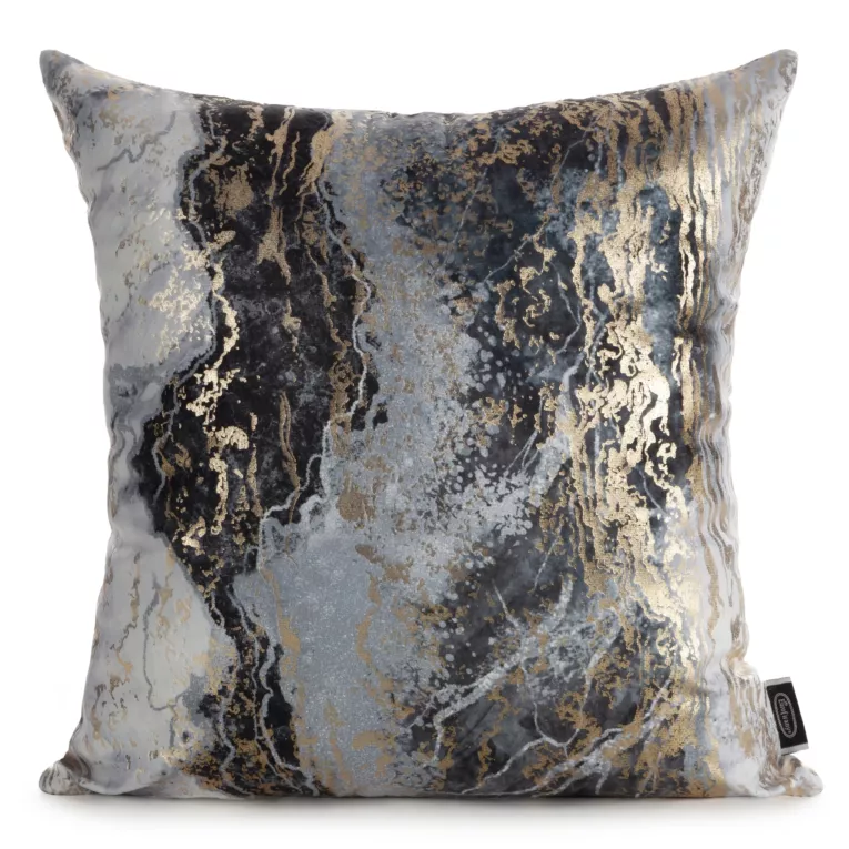 Poszewka dekoracyjna SOFI wykonana z miękkiego welwetu, ozdobiona błyszczącym, przecieranym nadrukiem, który nadaje jej elegancki, lekko postarzały wygląd. Wzór mieni się delikatnie pod wpływem światła, przyciągając wzrok i wprowadzając subtelny efekt glamour. Poszewka ma ukryty zamek wszyty w jednym z boków, co ułatwia wymianę wkładu, jednocześnie pozostając niemal niewidocznym, dzięki czemu nie zaburza estetyki całości. Taka poszewka sprawdzi się doskonale jako ozdoba w nowoczesnych i klasycznych wnętrzach, dodając im szyku i stylu.