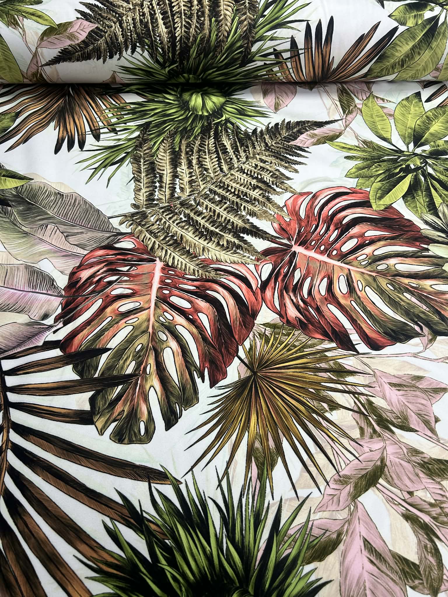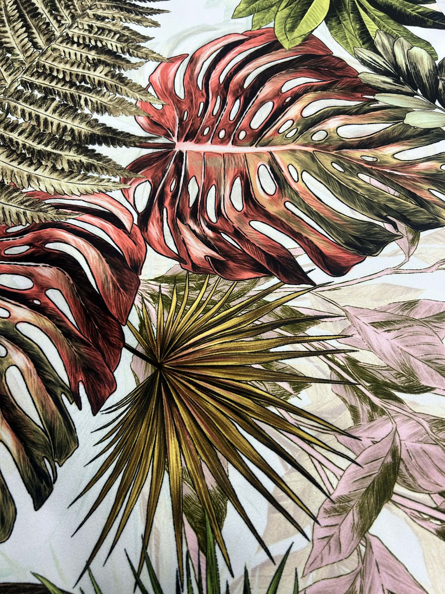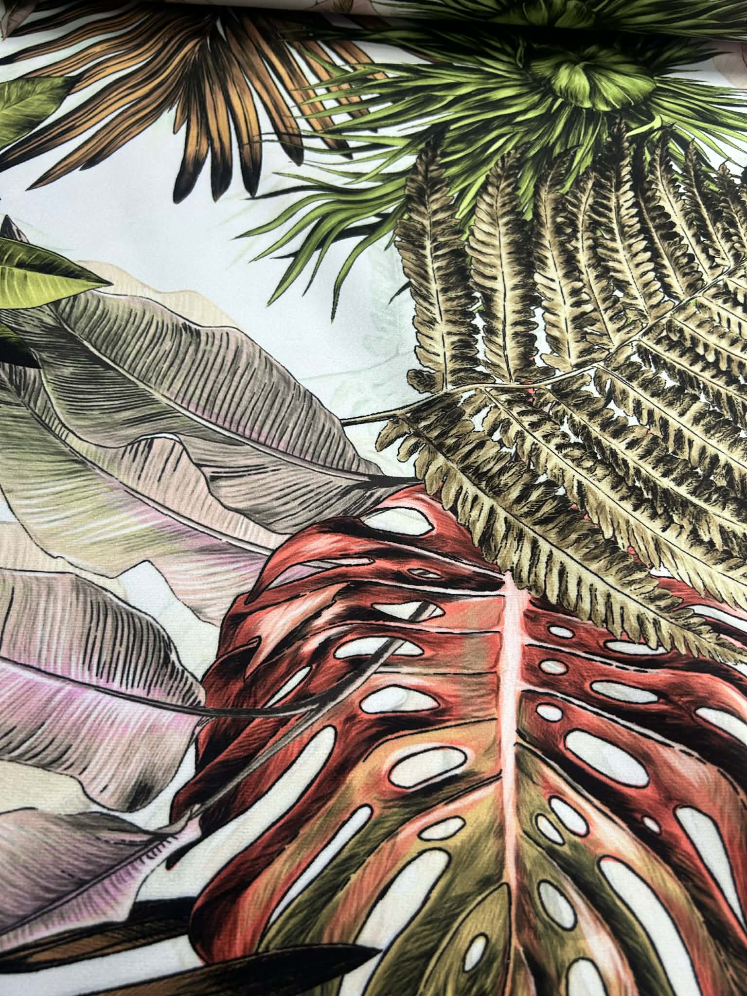 Piękna tkanina Velvetowa z motywem dżungli, szerokość 150cm.