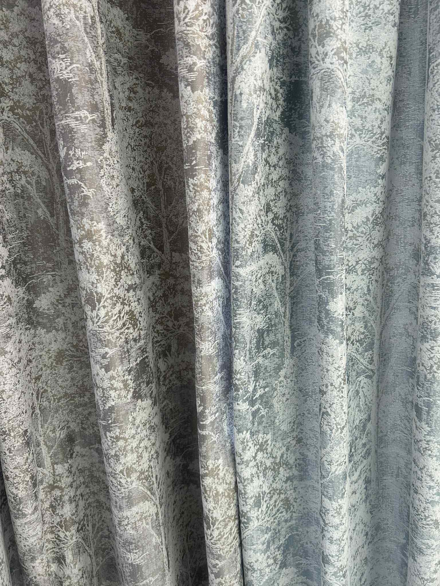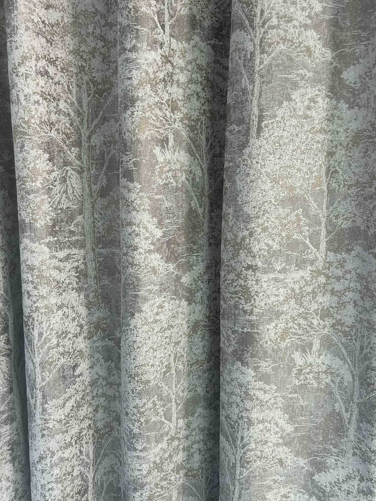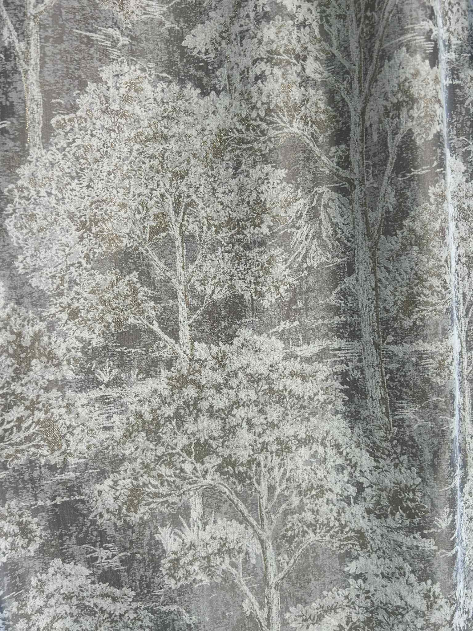 Wprowadź do swojego wnętrza subtelny urok natury dzięki eleganckiej zasłonie o wyjątkowym wzorze inspirowanym pejzażem leśnym. Delikatny, beżowy odcień tkaniny połączony ze złotymi akcentami tworzy harmonijną kompozycję, która pięknie rozświetla pomieszczenie i nadaje mu świeżości.